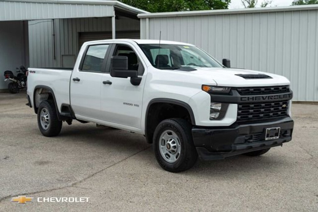 Clean CARFAX. Summit White 2022 Chevrolet Silverado 2500HD Work Truck 4WD 6-Speed Automatic 6.6L V8 170 Amp Alternator, 2-Speed Electronic Shift Transfer Case, 3.5 Diagonal Monochromatic Display DIC, Black Chevytec Spray-On Bedliner w/Chevrolet Logo, Black Front Bumper, Black Front Grille, Black Mirror Caps, Black Rear Bumper, Bluetooth® For Phone, Gooseneck/5th Wheel Package, Gooseneck/5th Wheel Prep Package, High-Visibility Vertical Trailering Mirrors, Integrated Trailer Brake Controller, Locking Tailgate, Manual Tailgate Function w/No EZ Lift, Manual Tilt-Wheel Steering Column, Power Rear Windows w/Express Down, Preferred Equipment Group 1WT, Rear 60/40 Folding Bench Seat (Folds Up), Rubberized-Vinyl Floor Covering, Solar Absorbing Tinted Glass, Standard Tailgate, Suspension Package.