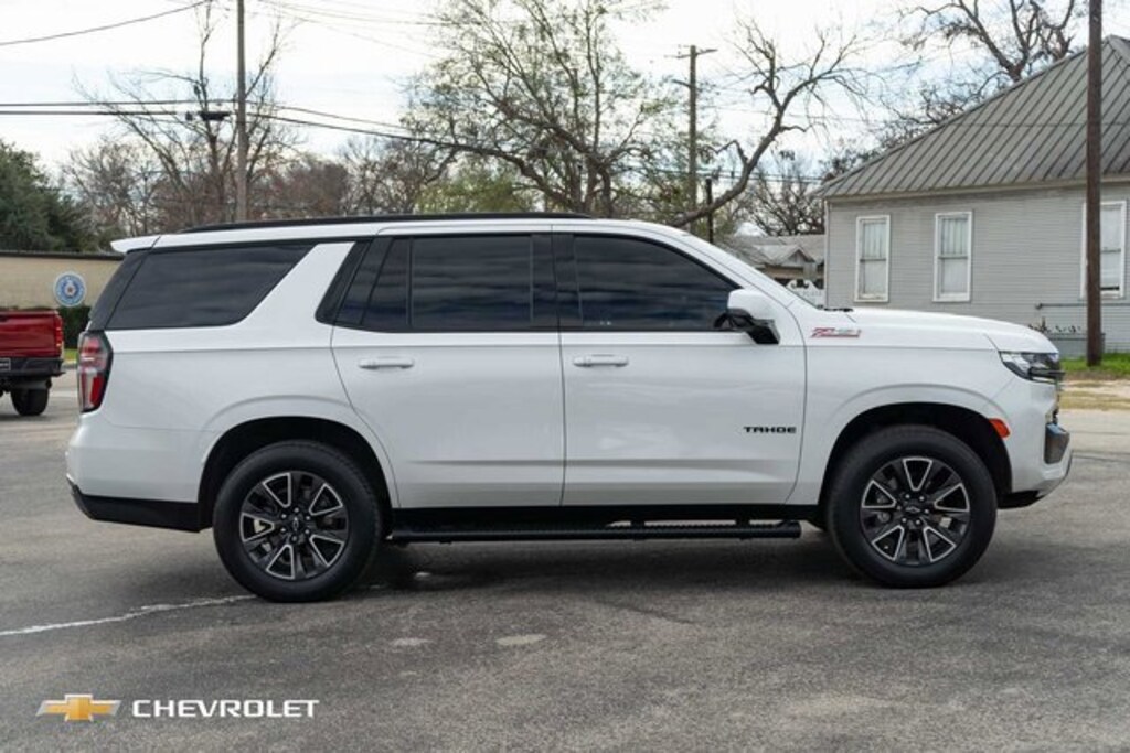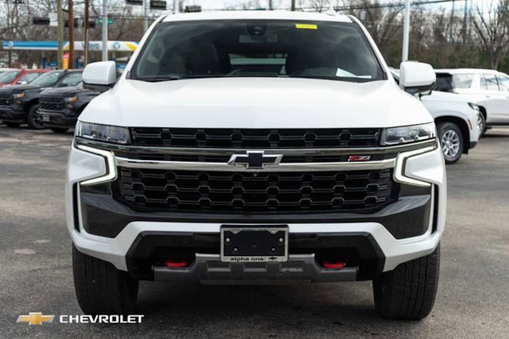 Clean CARFAX. Iridescent Pearl Tricoat 2022 Chevrolet Tahoe Z71 4WD 10-Speed Automatic with Overdrive EcoTec3 5.3L V8 1st & 2nd Row Color-Keyed Carpeted Floor Mats, 2-Speed Active Electronic AutoTrac Transfer Case, 2nd Row Pwr Release 60/40 Split-Folding Bench Seat, 3rd Row 60/40 Power-Folding Split-Bench Seat, Advanced Trailering Package, Air Ride Adaptive Suspension, Auto-Dimming Inside Rear-View Mirror, Automatic Stop/Start, Black Tubular Assist Steps, Bose 9-Speaker Stereo Audio System Feature, Bright Front & Rear Door Sill Plates, Color-Keyed Carpeting Floor Covering, Driver & Front Outboard Passenger Airbags, Driver Alert Package, Electronic Limited-Slip Differential, Enhanced Driver Information Center, Extra Capacity Cooling System, Floor Console w/Storage Area, Front High-Approach Angle Fascia, Hands-Free Rear Power Programmable Liftgate, HD Surround Vision, Heated 2nd Row Outboard Seats, Heated Steering Wheel, Hill Descent Control, Hitch Guidance w/Hitch View, Infotainment Display, Integrated Trailer Brake Controller, Lane Change Alert w/Side Blind Zone Alert, Leather-Wrapped Steering Wheel, LED Daytime Running Lamps, Luxury Package, Magnetic Ride Control Suspension, Max Trailering Package, Memory Settings, Memory Settings for Driver, Navigation System, Off-Road Capability Package, Outside Heated Power-Adjustable Mirrors, Power Tilt & Telescopic Steering Column, Preferred Equipment Group 2Z7, Rear Cross Traffic Alert, Rear Pedestrian Alert, Red Horizontal-Mounted Recovery Hooks, Remote Start, SiriusXM Radio w/360L, Smart Trailer Integration Indicator, Start/Stop System Disable Button, Universal Home Remote, Wireless Charging.