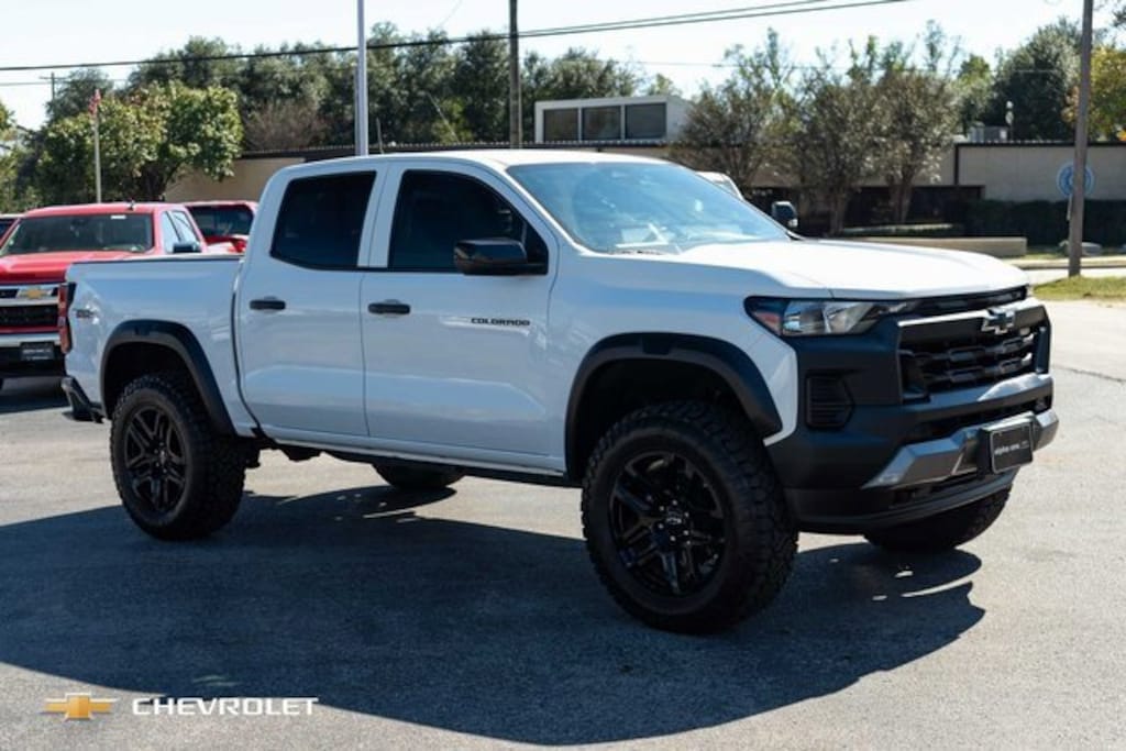 Clean CARFAX. Priced below KBB Fair Purchase Price! Summit White 2023 Chevrolet Colorado Trail Boss 4WD 8-Speed Automatic 2.7L Turbo 8-Way Power Driver Seat Adjuster, Advanced Trailering Package, Automatic Emergency Braking, Black Painted Mirror Caps, Blind Zone Steering Assist, Chevy Safety Assist, Electronic Automatic Cruise Control, EZ-Lift & Lower Tailgate, Following Distance Indicator, Forward Collision Alert, Front Pedestrian & Bicyclist Braking, Heated Power-Adjustable Outside Mirrors, Heavy-Duty Trailering Package, Integrated Trailer Brake Controller, IntelliBeam Automatic High Beam On/Off, Lane Keep Assist w/Lane Departure Warning, Manual Rear-Sliding Window, Navigation System, Power Driver Lumbar Control Seat Adjuster, Preferred Equipment Group 0TR, Rear Cross Traffic Braking, Rear Park Assist, Rear-Window Electric Defogger, Safety Package, StowFlex Tailgate Storage Compartment, Tailgate Keyed Cylinder Lock, Trail Boss Convenience Package, Trail Boss Convenience Package II, Trailering App.