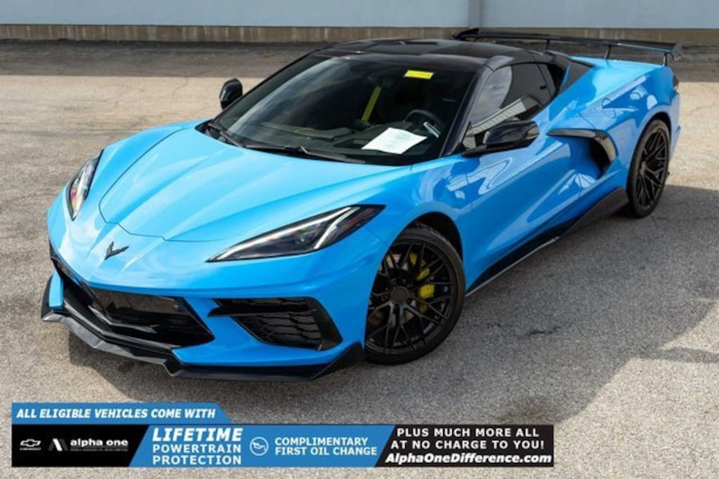 CARFAX One-Owner. Clean CARFAX. Rapid Blue 2023 Chevrolet Corvette Stingray 3LT RWD 8-Speed Dual Clutch 6.2L V8 2 Cargo Nets, Carbon Flash Metallic Painted Outside Mirrors, Carbon Flash Metallic-Painted Outside Mirrors, Custom Leather Wrapped Interior Package, Driver Power Bolster Seat Adjuster, Electrical Theft Deterrent System, Electronic Limited-Slip Differential, HD Front & Rear Vision Cameras, Head-Up Display, Heated & Vented Driver & Passenger Seats, Heated Steering Wheel, Heavy-Duty Cooling System, Memory Driver & Passenger Convenience Package, Navigation System, Passenger Power Bolster Seat Adjuster, Performance Data & Video Recorder, Performance Exhaust w/Stainless-Steel Tips, Performance Rear Axle Ratio, Power Driver Lumbar Control Seat Adjuster, Power Passenger Lumbar Control Seat Adjuster, Power-Adjustable Outside Heated Mirrors, Preferred Equipment Group 3LT, Rear Camera Mirror, Rear Cross Traffic Alert, Rear Z51 Spoiler, Side Blind Zone Alert, Sueded Microfiber-Wrapped Upper Interior Trim Pkg, Universal Home Remote, Vehicle Inclination Theft Deterrent Sensor, Vehicle Interior Movement Theft Deterrent Sensor, Wireless Charging for Devices, Z51 Performance Brakes, Z51 Performance Package, Z51 Performance Suspension.We offer a lifetime powertrain protection that covers unlimited miles, 100% parts & labors, and unlimited time. This includes the engine, transmission, as well as the drive axle. The benefits of Alpha One Difference*: Lifetime powertrain protection Complimentary first oil change Everything else you love (multi-point inspections, pre-vacation checkups, major service, and no appointments needed for Express Service) Everything in Alpha One Difference+ with key fob coverage, roadside assistance, tire & rim road hazard. Windshield repair. Paintless dent repair, and tire & rim cosmetic.Awards:* Car and Driver 10 BestCar and Driver, January 2017.You will get the best service before, during, and after the sale. When the products are similar the dealer makes the difference. Serving Central Texas and beyond! Good People + Great Selection = Your Best Deal. Bottom Line......We Make it Easy. At Alpha One Chevrolet we know there are lots of places you can buy a car, but why not try our hassle free car buying experience? We always try harder and pride ourselves on the fact that you will get the best service before, during, and after the sale. Alpha One Chevrolet wants to be your full service car dealership. We provide New Cars, Used Cars, Service, Financing, Warranties, and Genuine GM Parts!