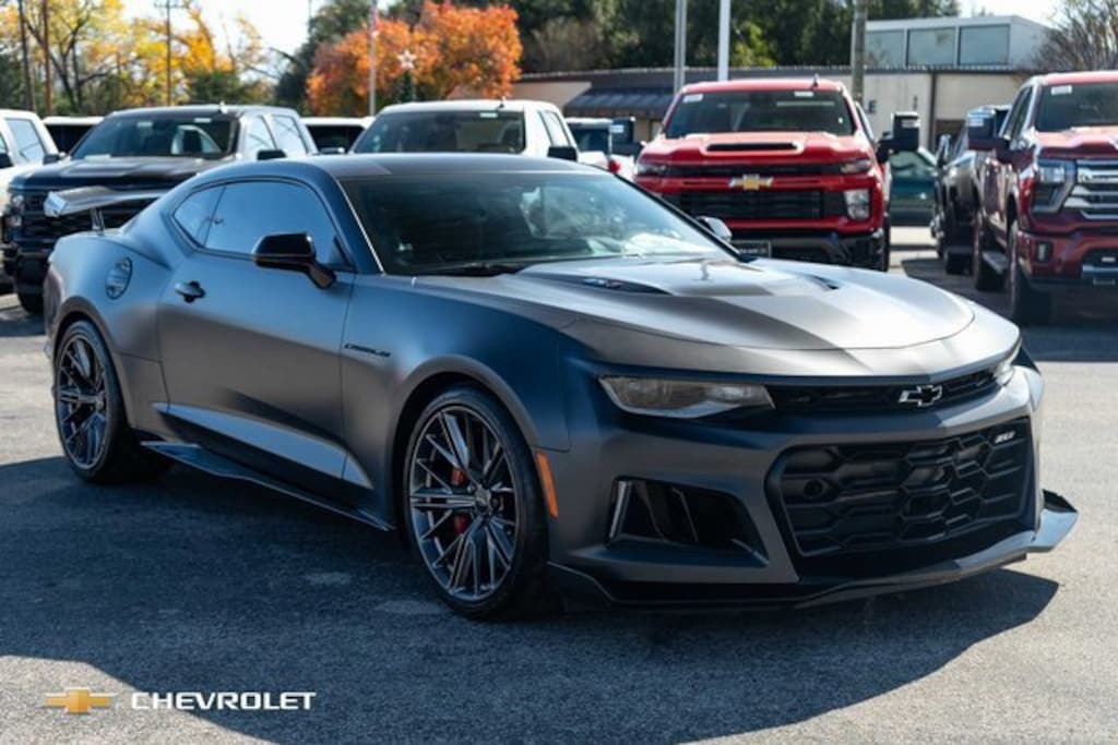 CARFAX One-Owner. Clean CARFAX. Panther Black Matte 2024 Chevrolet Camaro ZL1 Black Panther RWD 10-Speed Automatic 6.2L V8 Supercharged Black Fuel Filler Door (LPO), Black Lug Nuts (LPO), Black Metallic Center Stripe, Camaro Collector Edition - ZL1 Models, Camaro Collector Edition Exterior Badge, Carbon Fiber Instrument Panel Molding, Exposed Weave Carbon Fiber Rear Spoiler, Mosaic Black Metallic Front Splitter, Mosaic Black Metallic Grille, Performance Copper-Free Brake System, Preferred Equipment Group ZL1, Red-Painted Calipers.