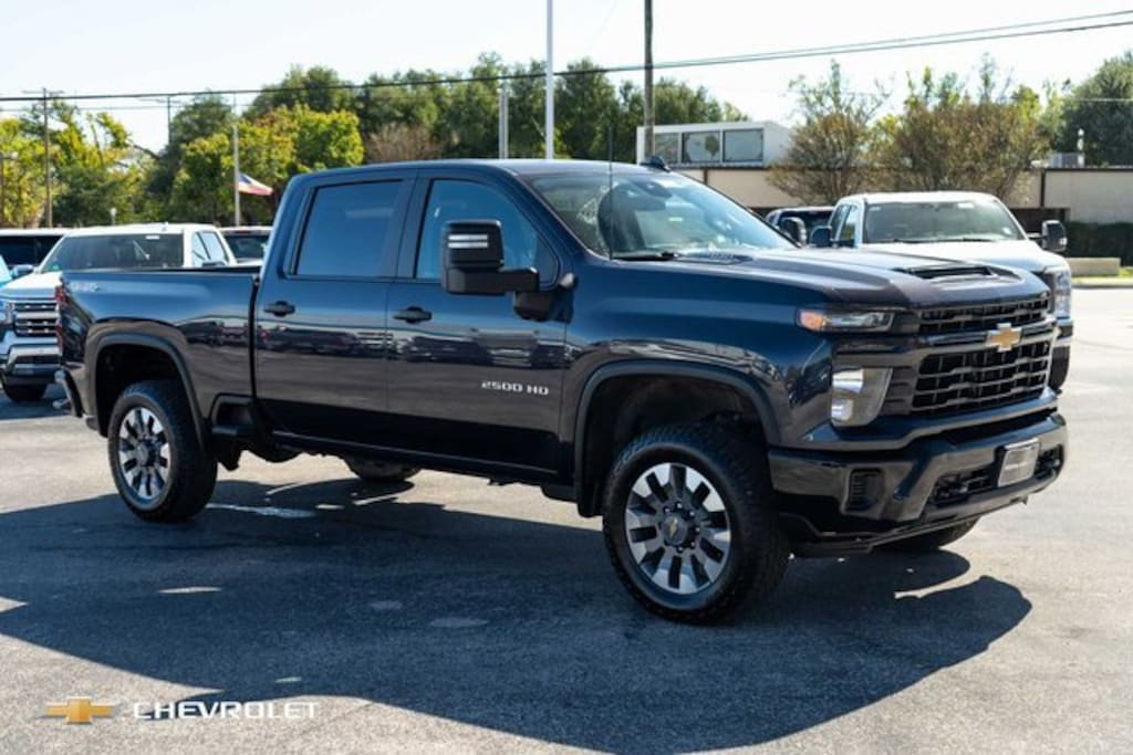 CARFAX One-Owner. Clean CARFAX. Dark Ash Metallic 2024 Chevrolet Silverado 2500HD Custom 4WD 10-Speed Automatic 6.6L V8 10-Way Power Driver Seat Adjuster w/Lumbar, 120-Volt Bed Mounted Power Outlet, 120-Volt Interior Power Outlet, 170 Amp Alternator, 2-Speed Electronic Shift Transfer Case, 3.5 Diagonal Monochromatic Display DIC, Black Mirror Caps, Bluetooth® For Phone, Chevrolet Connected Access Capable, Color-Keyed Carpeting Floor Covering, Compass, Custom Convenience Package, Deep-Tinted Glass, Dual Rear USB Ports (Charge Only), Electric Rear-Window Defogger, Electronic Cruise Control w/Set & Resume Speed, EZ Lift Power Lock & Release Tailgate, Front Rubberized Vinyl Floor Mats, HD Rear Vision Camera, Heated Vertical Trailering Mirrors, Integrated Trailer Brake Controller, LED Cargo Area Lighting, Locking Tailgate, Manual Tailgate Function w/No EZ Lift, Manual Tilt-Wheel Steering Column, OnStar & Chevrolet Connected Services Capable, Power Door Locks, Power Front Windows w/Driver Express Up/Down, Power Front Windows w/Passenger Express Down, Power Rear Windows w/Express Down, Preferred Equipment Group 1CX, Push Button Start, Rear 60/40 Folding Bench Seat (Folds Up), Rear Rubberized Vinyl Floor Mats, Remote Keyless Entry, Remote Vehicle Starter System, SiriusXM w/360L, Standard Tailgate, Suspension Package, Unauthorized Entry Theft-Deterrent System, Wi-Fi Hotspot Capable, Wireless Phone Projection.