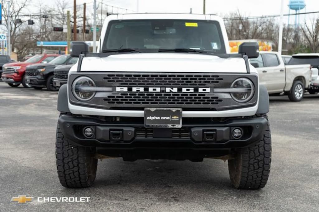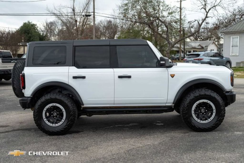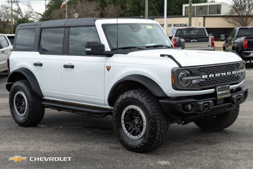 CARFAX One-Owner. Oxford White 2023 Ford Bronco Badlands Advanced 4WD 10-Speed Automatic 2.7L EcoBoost V6 ABS brakes, Compass, Electronic Stability Control, Heated door mirrors, Illuminated entry, Low tire pressure warning, Remote keyless entry, Traction control.We offer a lifetime powertrain protection that covers unlimited miles, 100% parts & labors, and unlimited time. This includes the engine, transmission, as well as the drive axle. The benefits of Alpha One Difference*: Lifetime powertrain protection Complimentary first oil change Everything else you love (multi-point inspections, pre-vacation checkups, major service, and no appointments needed for Express Service) Everything in Alpha One Difference+ with key fob coverage, roadside assistance, tire & rim road hazard. Windshield repair. Paintless dent repair, and tire & rim cosmetic.You will get the best service before, during, and after the sale. When the products are similar the dealer makes the difference. Serving Central Texas and beyond! Good People + Great Selection = Your Best Deal. Bottom Line......We Make it Easy. At Alpha One Chevrolet we know there are lots of places you can buy a car, but why not try our hassle free car buying experience? We always try harder and pride ourselves on the fact that you will get the best service before, during, and after the sale. Alpha One Chevrolet wants to be your full service car dealership. We provide New Cars, Used Cars, Service, Financing, Warranties, and Genuine GM Parts!