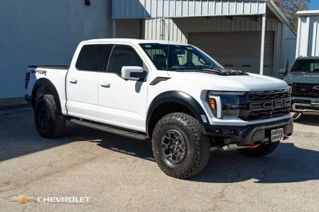 CARFAX One-Owner. Clean CARFAX. Priced below KBB Fair Purchase Price! Oxford White 2025 Ford F-150 Raptor 4WD 10-Speed Automatic 5.2L V8 Code Orange Front Tow Hooks, Code Orange Stitching Doors & Instrument Panel, Dual Valve Shocks, Equipment Group 803A Raptor R, Interior Code Orange Raptor R Badging, Modular Front Bumper, Navigation system: Connected Navigation, Raptor R Badge Tailgate Applique, Raptor R Exterior Graphics, Raptor R Exterior Theme, Raptor R Interior Theme, Raptor R Unique Grille, Raptor R Unique Hood Vent w/R Badge, RECARO w/Code Orange Stitching Front Seats, Removes 2KW Pro Power Onboard, Unique Carbon Fiber Appliques, Upgraded Dual Exhaust, Wheels: Raptor R Unique 17 Forged Aluminum.